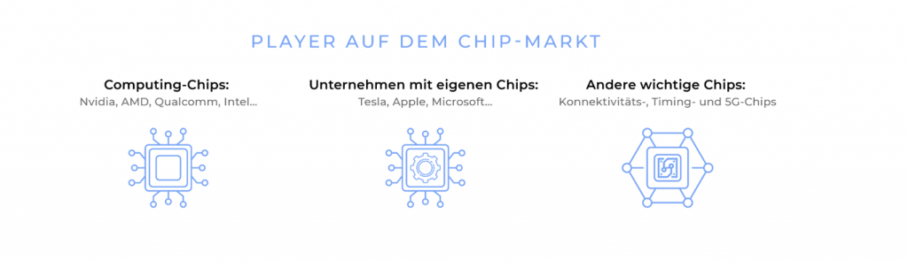 Hinzu kommt, dass viele große Unternehmen – darunter Apple, Tesla und Microsoft – inzwischen eigene Chips entwickeln, die speziell auf ihre Anwendungsfälle zugeschnitten sind. So hat Tesla zum Beispiel einen FSD-Chip entwickelt, der auf den Anwendungsfall Autonomes Fahren optimiert ist. Zukünftig könnte Tesla diesen Chip nicht nur für seine eigenen Modelle einsetzen, sondern auch an andere Automobilhersteller vertreiben.