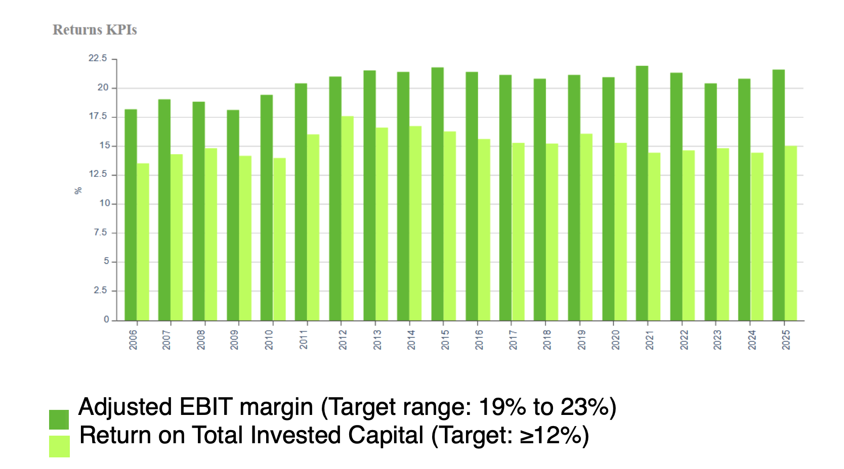 Halma will nachhaltig >12 % Kapitalrendite erzielen und gleichzeitig eine bereinigte EBIT-Marge zwischen 19 % und 23 % halten – zwei Kernziele, um profitables Wachstum und hohe Cash-Generierung langfristig abzusichern.
