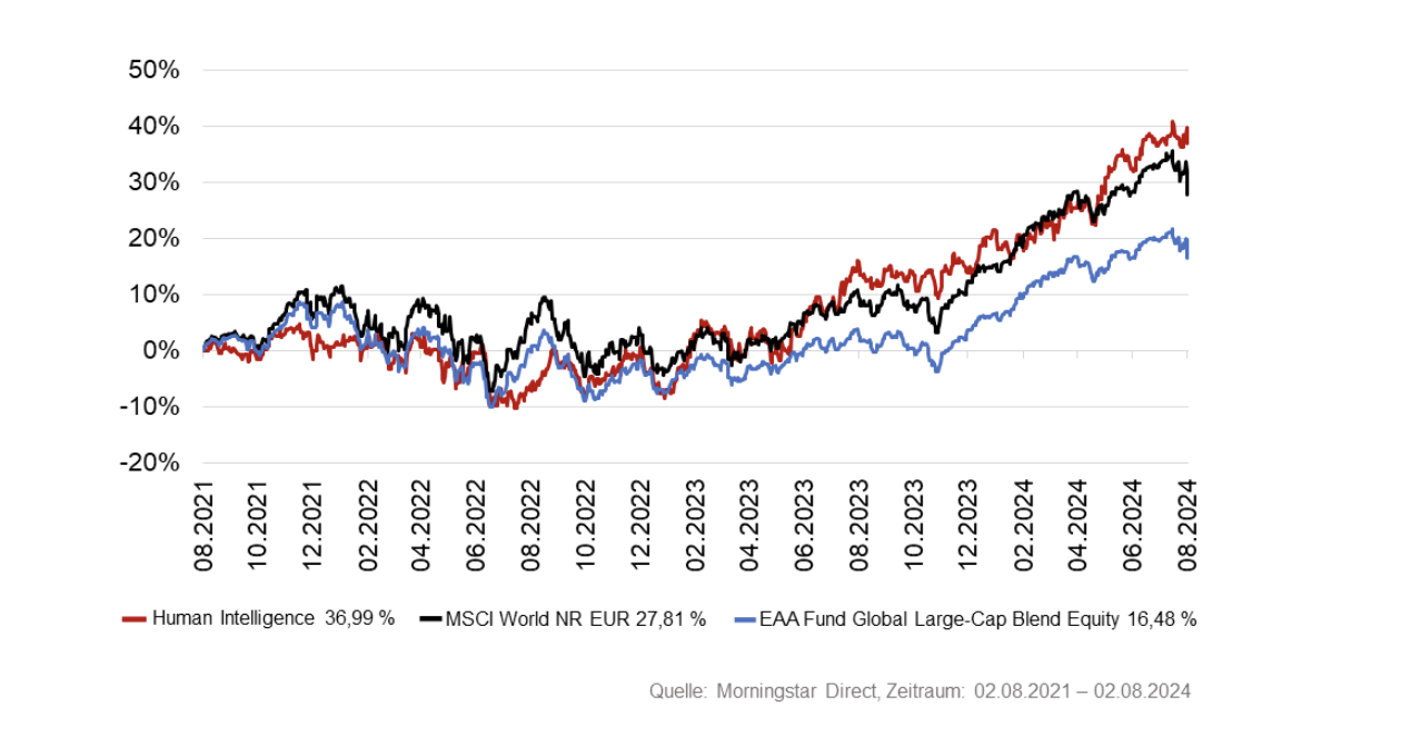 Der Human Intelligence hat das geschafft, woran viele andere globale Aktienfonds scheitern, nämlich eine Outperformance gegenüber der starken Benchmark: